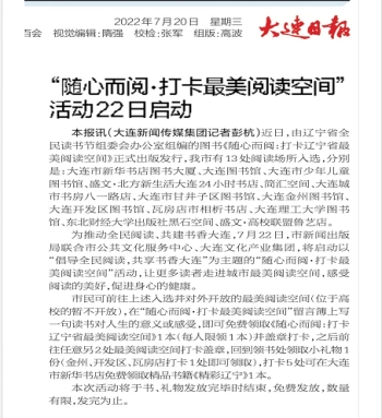 近日,由辽宁省全民读书节组委会办公室组编的图书《随心而阅:打卡辽宁省最美阅读空间》正式出版发行,大连理工大学伯川图书馆入选。据悉,大连市有13处阅读场所入选,分别是:大连市新华书店图书大厦、大连市图书馆、大连市少年儿童图书馆、盛文·北方新生活大连24小时书店、简汇空间、大连城市书房八一路店、大连市甘井子区图书馆、大连金州图书馆、大连开发区图书馆、瓦房店市相析书店、大连理工大学伯川图书馆、东北财经大学...