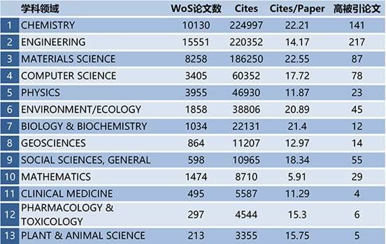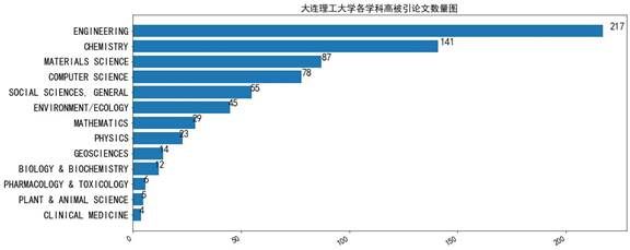 本期ESI更新数据显示,大连理工大学共有739篇高被引论文,入围ESI全球前1%学科有13个,分别是:化学、工程、材料科学、计算机科学、物理学、环境/生态学、生物学和生物化学、地球科学、社会科学、普通、数学、临床医学、药理学和毒理学、植物和动物科学。