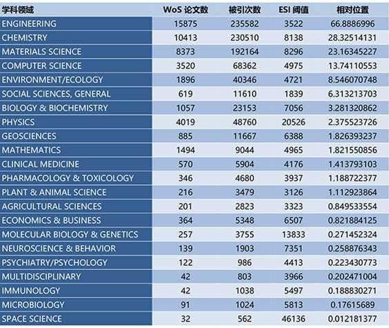高被引论文阈值是指近十年,某一ESI学科某一出版年被引次数排在前1%的论文的最低被引频次,该被引频次为被SCIE、SSCI和A&HCI三个库中论文引用的数量。