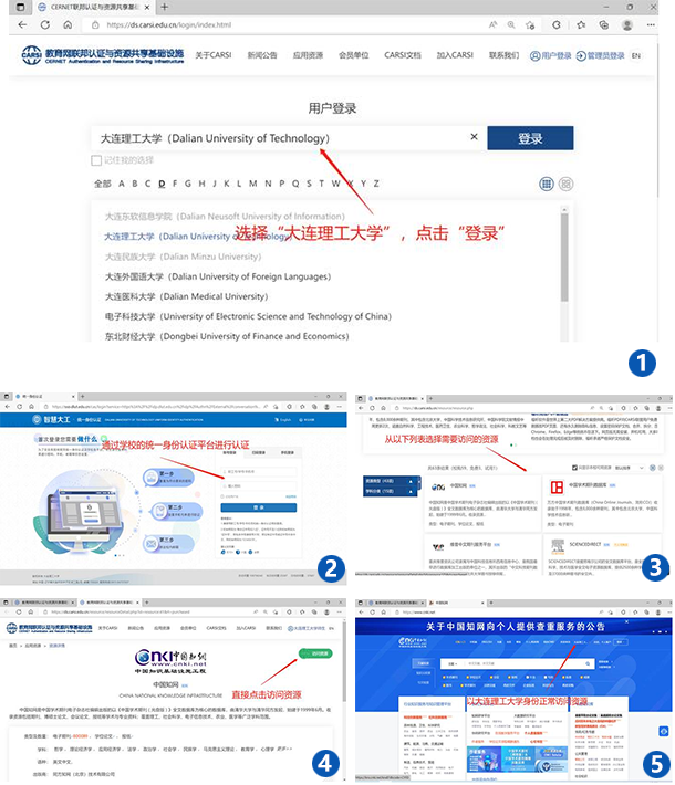 1.访问CARSI联盟登录网站https://ds.carsi.edu.cn/login/index.html,选择“大连理工大学(Dalian University of Technology)”进行登录;