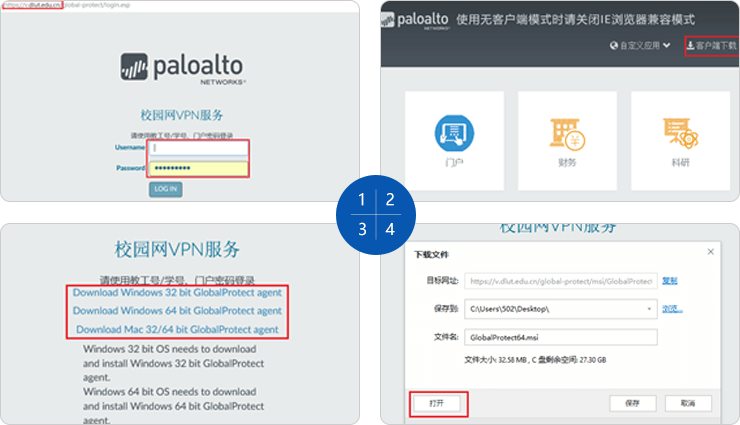 1.访问https://v.dlut.edu.cn 使用教工号/学号、门户密码登录,点击客户端下载