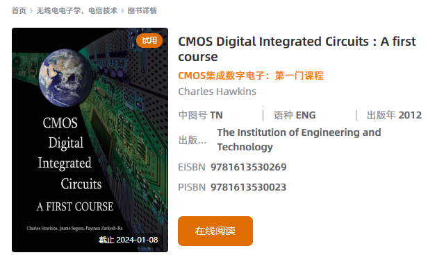 本次试用资源精选来自Wiley、CRC(Taylor & Francis旗下)、Cambridge University Press 、OVID、McGrill-Hill、IET电子教材库的10067种经典教材品种,涵盖理工、经管、农学、医学、人文社科等学科,支持读者在试用期内进行全文阅读。