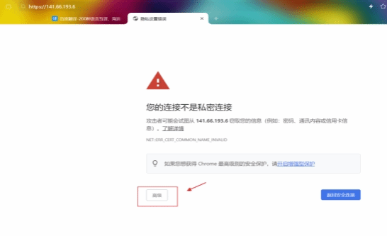 1. 浏览器网址输入:https://141.66.193.6/,出现如下提示后,点击高级