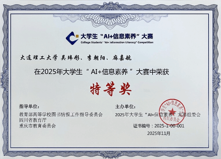 首次征战大学生“AI+信息素养”大赛全国联赛,团队便以强劲实力直冲巅峰,斩获特等奖,这份亮眼的成绩正是图书馆多年深耕信息素养培育的生动注脚——图书馆始终以学生成长为核心,聚焦“知识获取—思维培养—创新实践”核心培育方向,构建起“课程—讲座—微课—竞赛”的全链条信息素养培育体系。未来,我们将继续以赛促学、以赛促教,为提升学生科研创新能力、助力学校拔尖创新人才培养贡献力量。