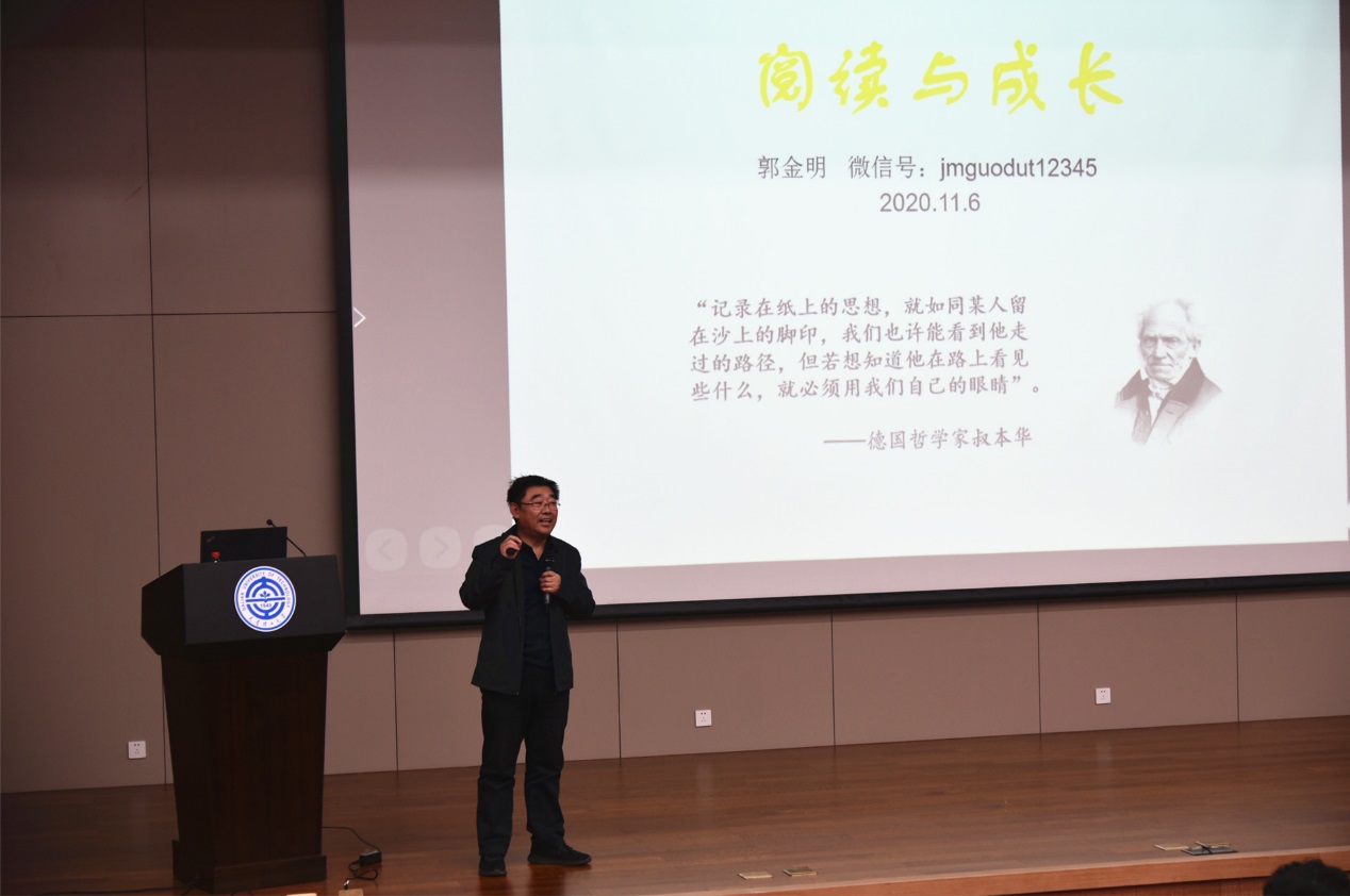 为什么要阅读?怎样阅读?读什么? 11月6日,图书馆主办的“阅读与成长”主题讲座在伯川图书馆报告厅举行,大连理工大学校长助理郭金明教授为师生们带来了一场精彩的讲座。讲座由图书馆馆长马震岳教授主持,近300名师生参加。