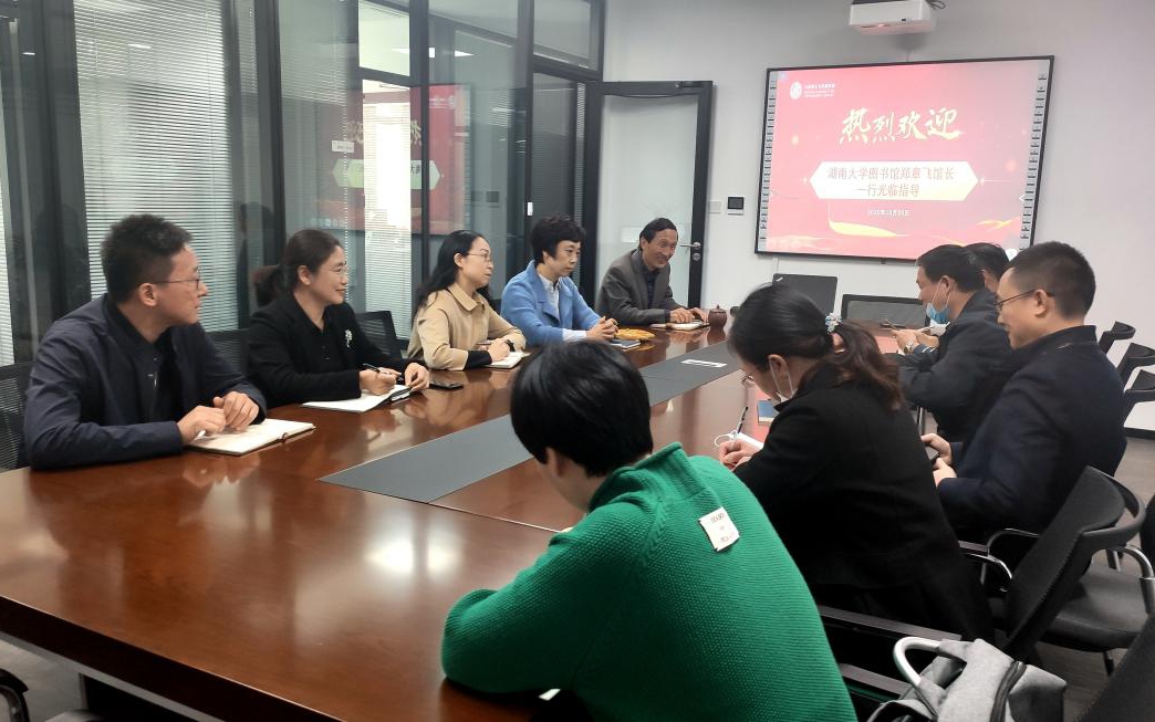 10月16日上午,湖南省高校图工委秘书长、湖南大学图书馆原馆长郑章飞一行来我馆调研交流。我馆馆长马震岳在伯川图书馆207会议室接待了来宾,副馆长王红、刘凡儒、王哲、阎雅娜参加了调研座谈会。