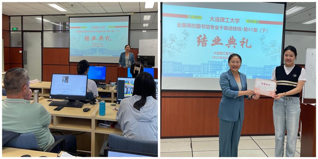 大连理工大学全国高校图书馆专业干部进修班第四十一届下半学年班结业典礼于2023年6月19日在令希图书馆举办。进修班学员及刘凡儒副馆长代表馆领导班子参加了本次典礼。