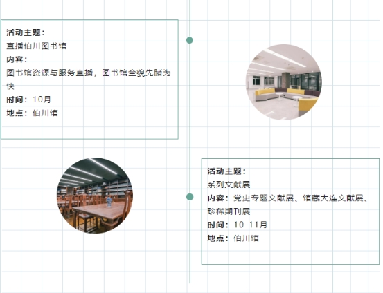 地点:伯川图书馆北大厅、开发区分馆一楼大厅、盘锦校区E01