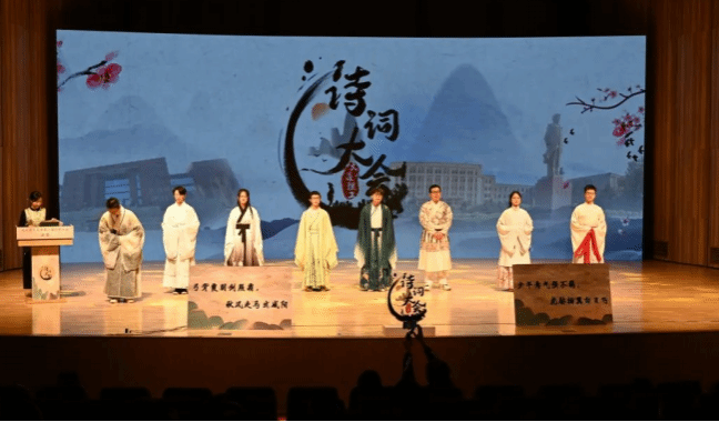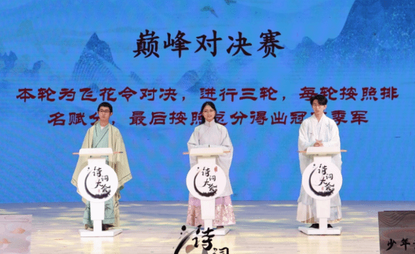 诗词大会决赛共分个人追逐赛,风云攻擂赛和巅峰对决赛三轮,8位选手同台上阵,开展精彩对决。在飞花令过程中,选手们就“雪”“月”“风”三字展开了激烈角逐,对答如流,滔滔不绝,展现了中华诗词文化的美妙。对决之外,活动还邀请嘉宾针对诗词题目进行专业细致的点评与解说,更有华美的汉服与舞蹈表演,让现场师生共同感受中华传统文化的经久魅力。