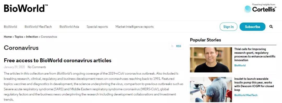 科睿唯安免费开放BioWorld新闻报道:新型冠状病毒相关专题,BioWorld作为全球制药领域的专业媒体,为公众及专业人士了解更多新型冠状病毒(2019-nCoV)最新资讯及研究进展,特免费开放“Coronavirus”专题系列文章。