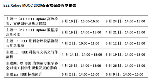 为了满足疫情期间广大科研工作者以及师生科研热情,提高科研效率,IEEE以及iGroup推出的2020年IEEE Xplore MOOC春季课程即将开始啦!
