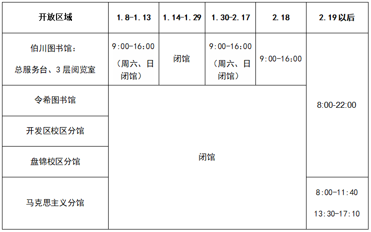 根据学校2023年寒假放假安排,结合师生需求实际,图书馆2023年寒假期间开放安排如下: