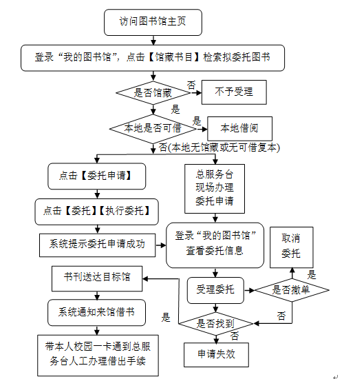 2.委托借还:读者委托本地馆借阅、归还异地馆图书(参照规则六)。
