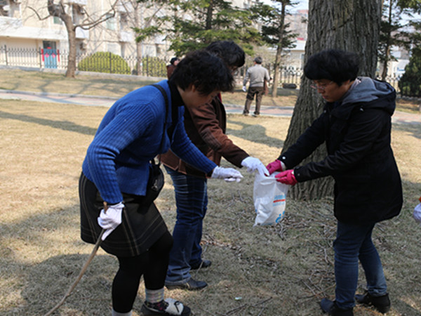 在步行前往海事大学天象馆的路上,党员们沿途清理校园白色垃圾,用自己的“小行动”换取生活的“大不同”,为建设绿色校园、美丽校园、文化校园、文明校园做出自己的一份贡献。