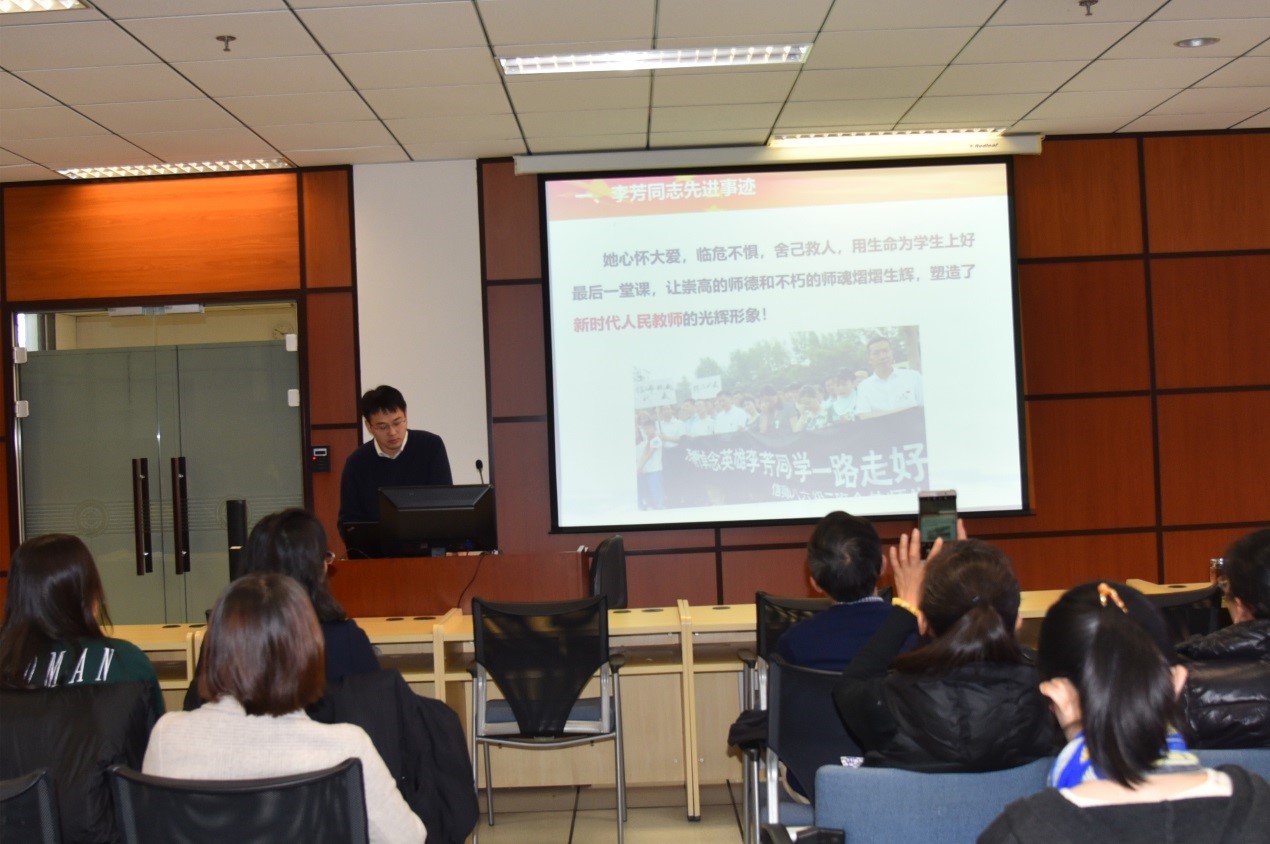 会上,根据上级党委的要求,以支部共建的形式共同学习了系列会议、文件精神及先进典型事迹。能动学院能动教育部重点实验室办公室主任蒋成刚老师带领全体党员共同学习了李芳同志和陈琳同志先进事迹。两个支部共同开展了解放思想大讨论学习活动,针对前期学习内容,双方党员代表纷纷发言,讨论学习内容,分享心得体会。现场还通过观看机关党委精彩党课视频的形式学习了新修订的党支部工作条例及纪念改革开放40周年大会精神。