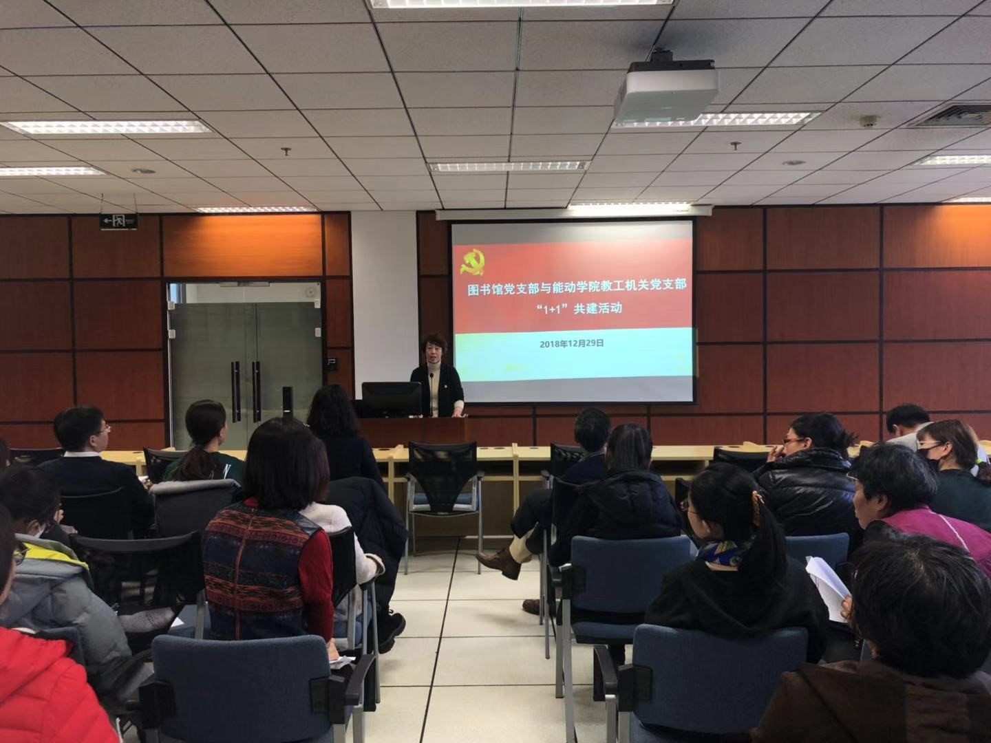 为进一步落实 不忘初心主题教育的工作要求,2018年12月29日,在令希图书馆204会议室,图书馆党支部联合共建支部——能动学院教工机关党支部共同开展了“‘誓’为初心 不‘辞’奋斗”特色主题党日暨“1+1”共建活动,两个支部全体党员出席会议。会议由图书馆党支部书记王红主持。