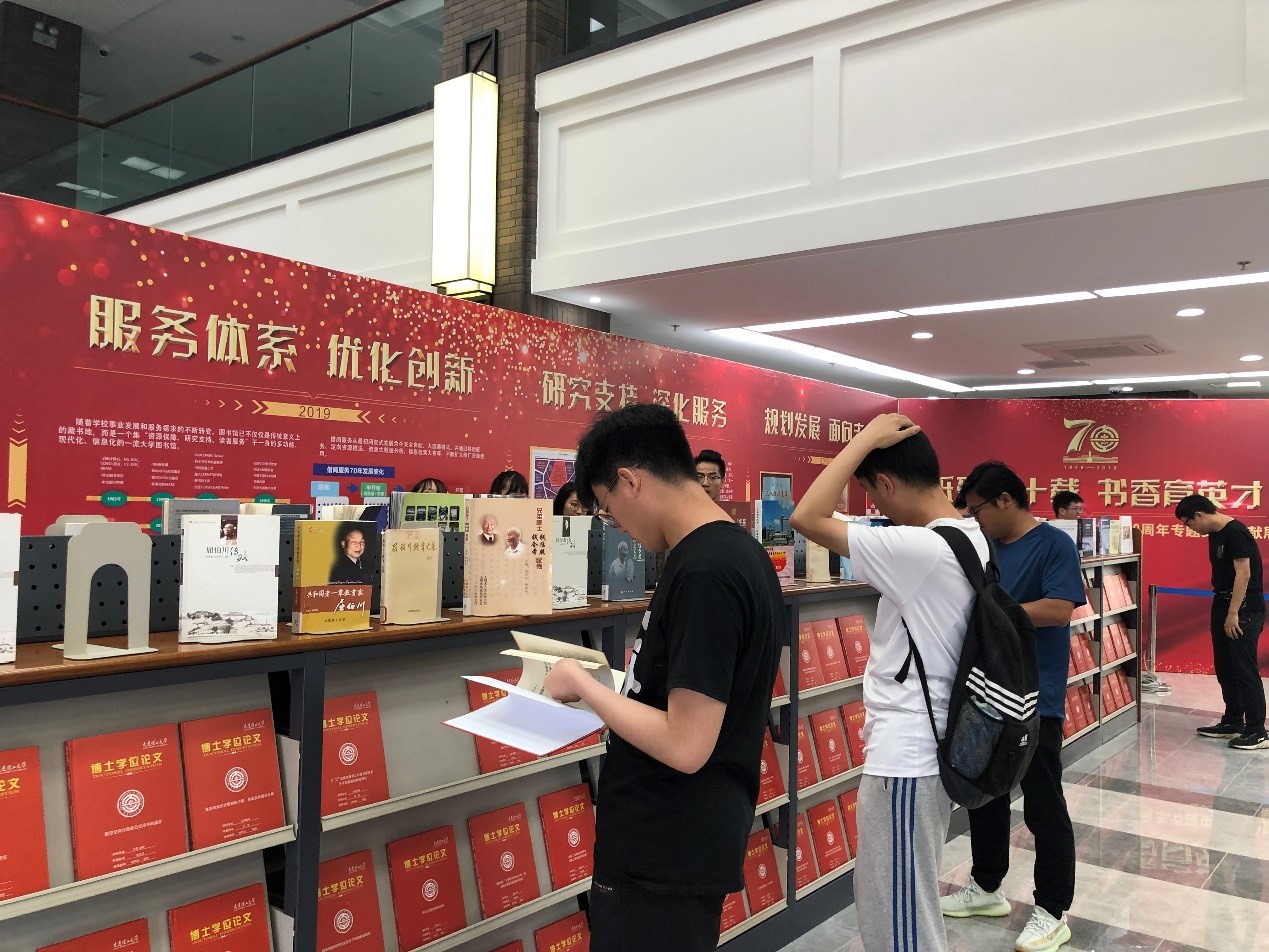 70年来,图书馆借阅服务从最初闭架式发展为今天全自助、大流通模式;馆藏资源从1949年建馆初期约为1万册藏书发展为今天已拥有实体馆藏353万册(件),中、外文电子图书629万册,拥有110个平台270个数据库、63690种电子期刊;信息化建设已从1985年286计算机发展为今天全网络化、自动化、移动化服务,未来还将全面建设智慧图书馆;图书馆的功能定位也从最初的藏书地发展成为今天集“资源保障、研究支持、读者服务”于一身的多功能、现代化、信息化的一流大学图书馆。