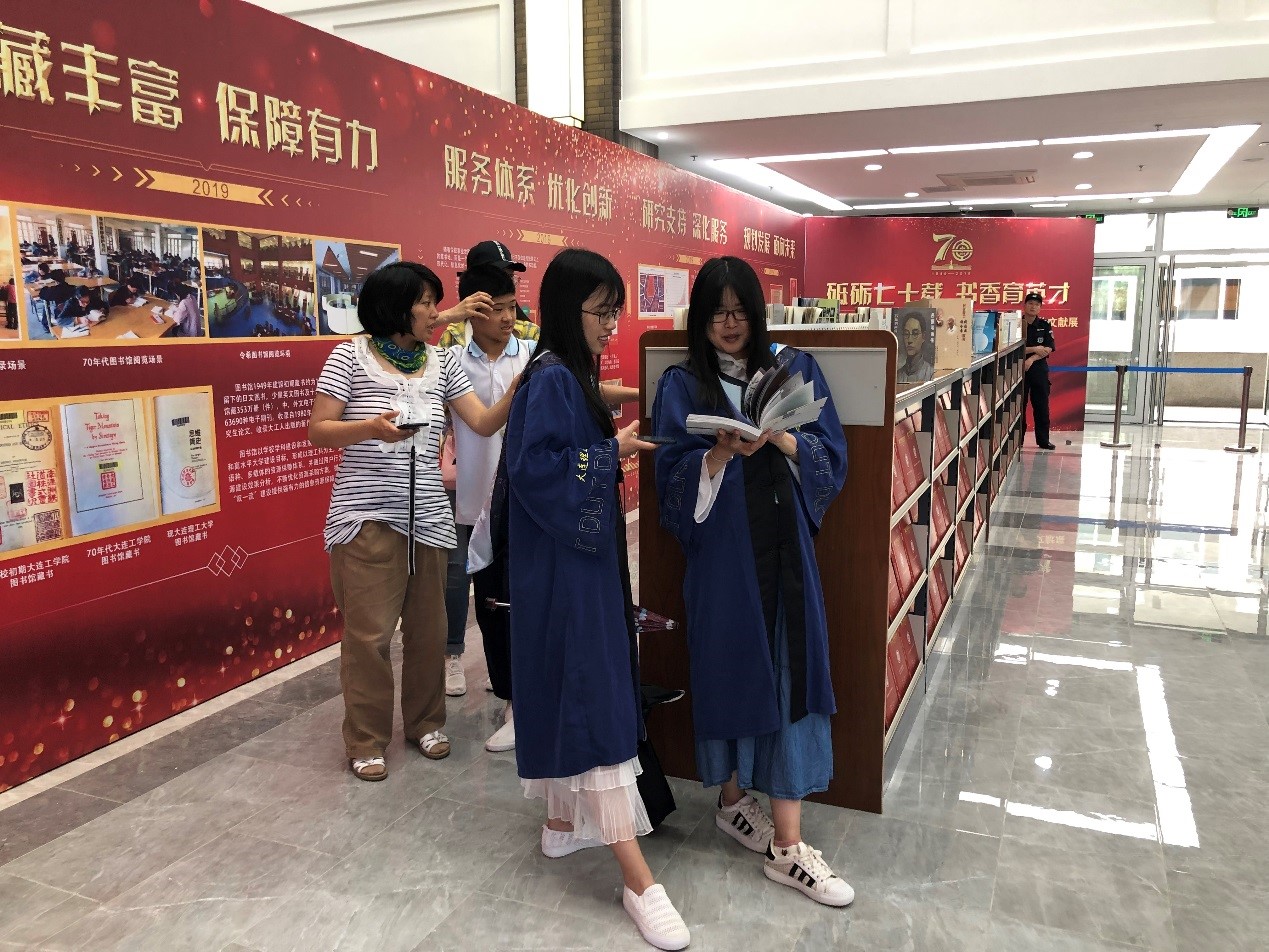 本次展览以“砥砺七十载 书香育英才” 为主题,共分为七秩芳华,创业奠基;三地五馆,蓬勃发展;馆藏丰富,保障有力;服务体系,优化创新;研究支持,深化服务;谋划发展,面向未来六个板块,图文并茂,真实还原了70年来图书馆在馆舍设施、资源服务、读者风貌等各方面发生的翻天覆地的变化。展览还展出1984-1992年间大工博士毕业生学位论文200余篇,大工人著作及校友赠书200余册,以及英文打字机、缩微平片阅读器、目录屉等老物件。令希图书馆同主题图文展也同步展出。展览一经展出,吸引了众多师生读者及校友前来参观。