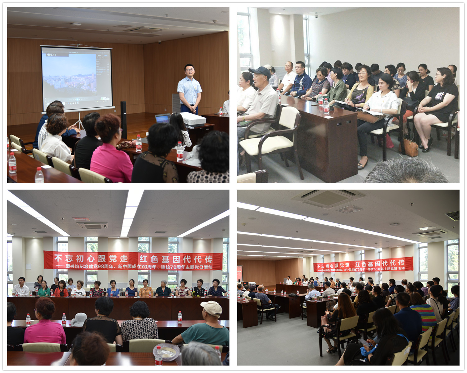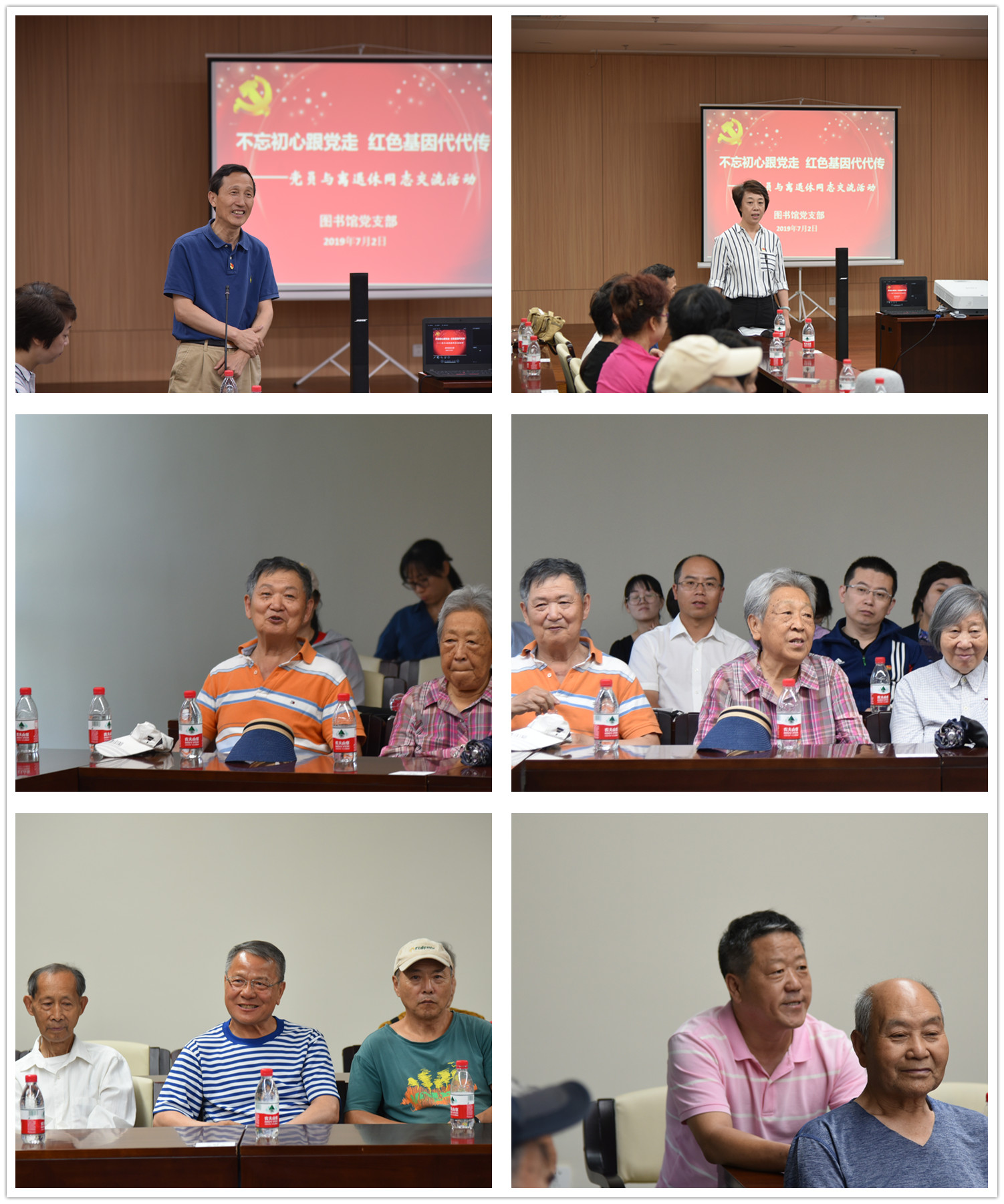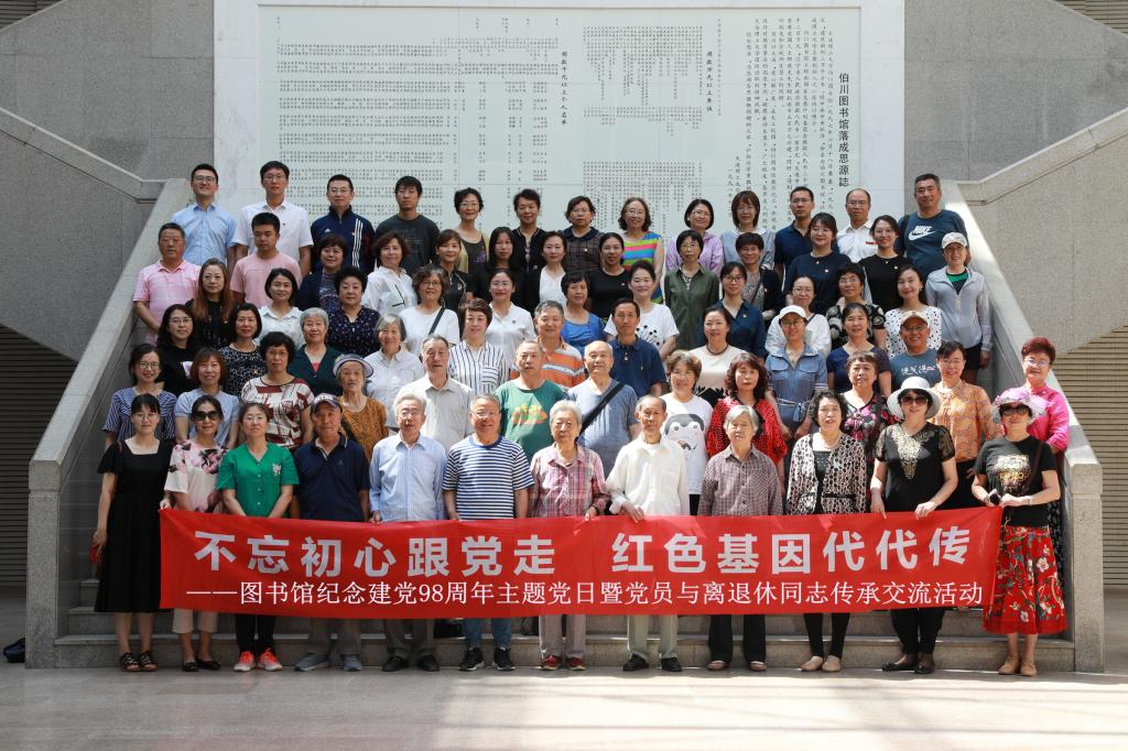 7月2日上午,修葺一新的伯川图书馆内气氛庄重而温馨,生动而热烈。这一天对全体图书馆人来说具有重要意义。2019年,不仅是是共和国七十华诞,是大连理工大学建校七十周年,也是图书馆建馆70周年、伯川馆开馆20周年纪念。在校庆刚过,伯川重新开馆在即,又恰逢建党98周年之际,图书馆开展“不忘初心跟党走 红色基因代代传——图书馆纪念建党98周年主题党日暨党员与离退休同志联谊活动”,传承红色基因,不忘初心,继承和发扬图书馆精神。图书馆全体党员与离退休老同志参加活动。