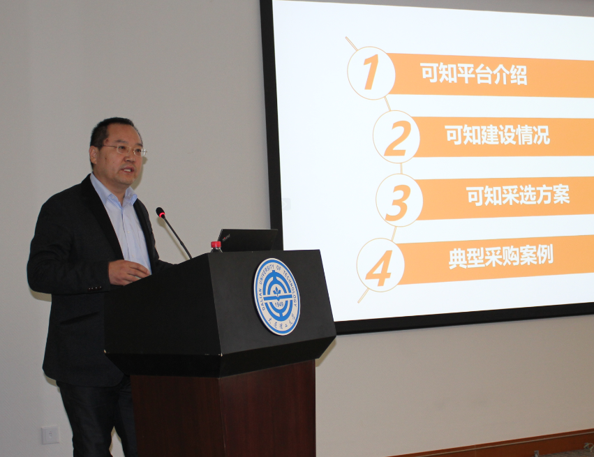 图6中新金桥公司副总经理赵军科介绍国家知识服务平台可知分平台建设情况