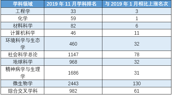 尤其可喜的是,2019年度我校新增两个前千分之一学科分别为材料科学,计算机科学,由此我校共四个学科进入前ESI千分之一,国际一流水平学科数排名位列国内高校第六名。
