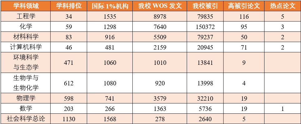 北京时间2020年1月9日(2020年第一期),基本科学指标数据库(Essential Science Indicators,简称ESI)再次更新了其统计数据,大连理工大学国际位列第400位,上升5位;国内高校排名位列第22位。榜单显示,大连理工大学本期高被引论文共计404篇,热点论文13篇,入榜前1‰学科为4个,入榜前1%学科为9个。我校继续以四个进入前千分之一领域学科数并列国内高校第六名!