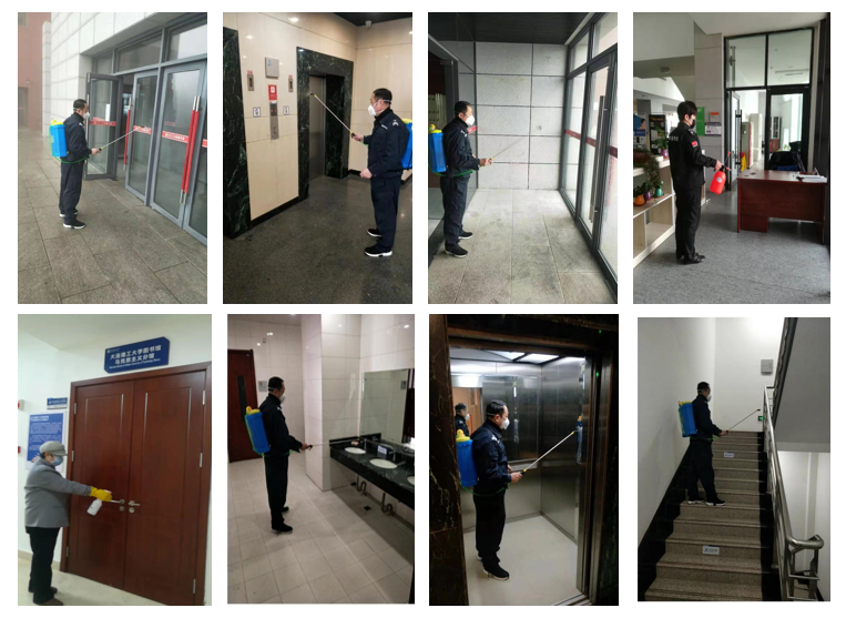 闭馆期间,全面开展楼宇防疫消毒工作,工作人员每日进行定时消毒、通风并做好记录,对馆内窗台墙面、课桌椅、卫生洁具、楼梯扶手进行84消毒液消毒,对电梯按钮、门窗把手等重点位置进行酒精消毒。开馆前严格按照《大连理工大学通风消毒管理办法及工作流程》集中开展消毒工作,保持环境整洁卫生,严防死守,做好疫情防控。