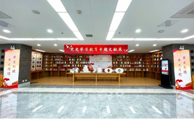 伯川图书馆3楼中厅,党史学习教育专题文献展区鸿著琳琅、氛围热烈。展区陈列实体图书500余种,内容涵盖党史党建重要文献、重大历史事件纪实和重要党史人物传记等,习近平新时代中国特色社会主义思想理论著作全面丰富。电子阅读器、封面图片等形式展出电子图书、报刊及有声读物,扫描二维码即可在线阅读,也可下载后随身听看。多类型、多载体的文献资源,为广大师生学党史、悟思想提供了完备的资源保障和便捷的阅读服务。